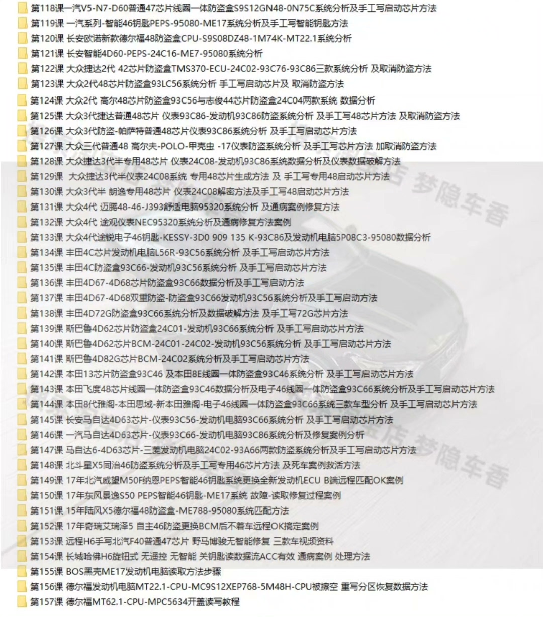 2022临沂花园汽车防盗视频培训课程钥匙匹配教程防盗数据修复资料