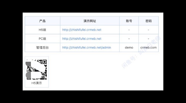 ♦ 官网演示:www.crmeb.com。可以查看演示、安装说明、服务支持、使用手册、社区帮助。