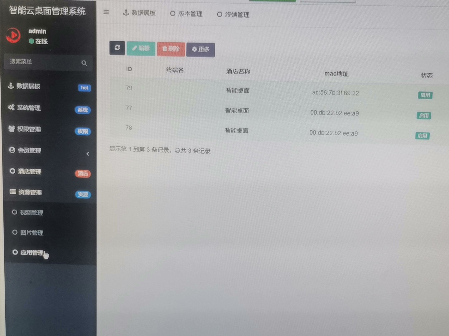 用户可自行推送应用,字幕,管理应用市场,首页大屏可自定义播放视频等,后台显示所有上线用户,系统稳定,安全性高