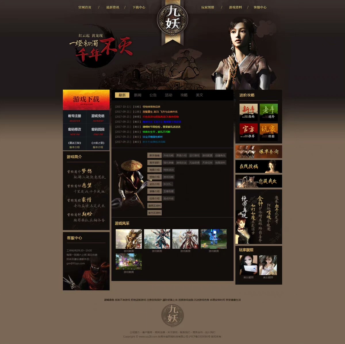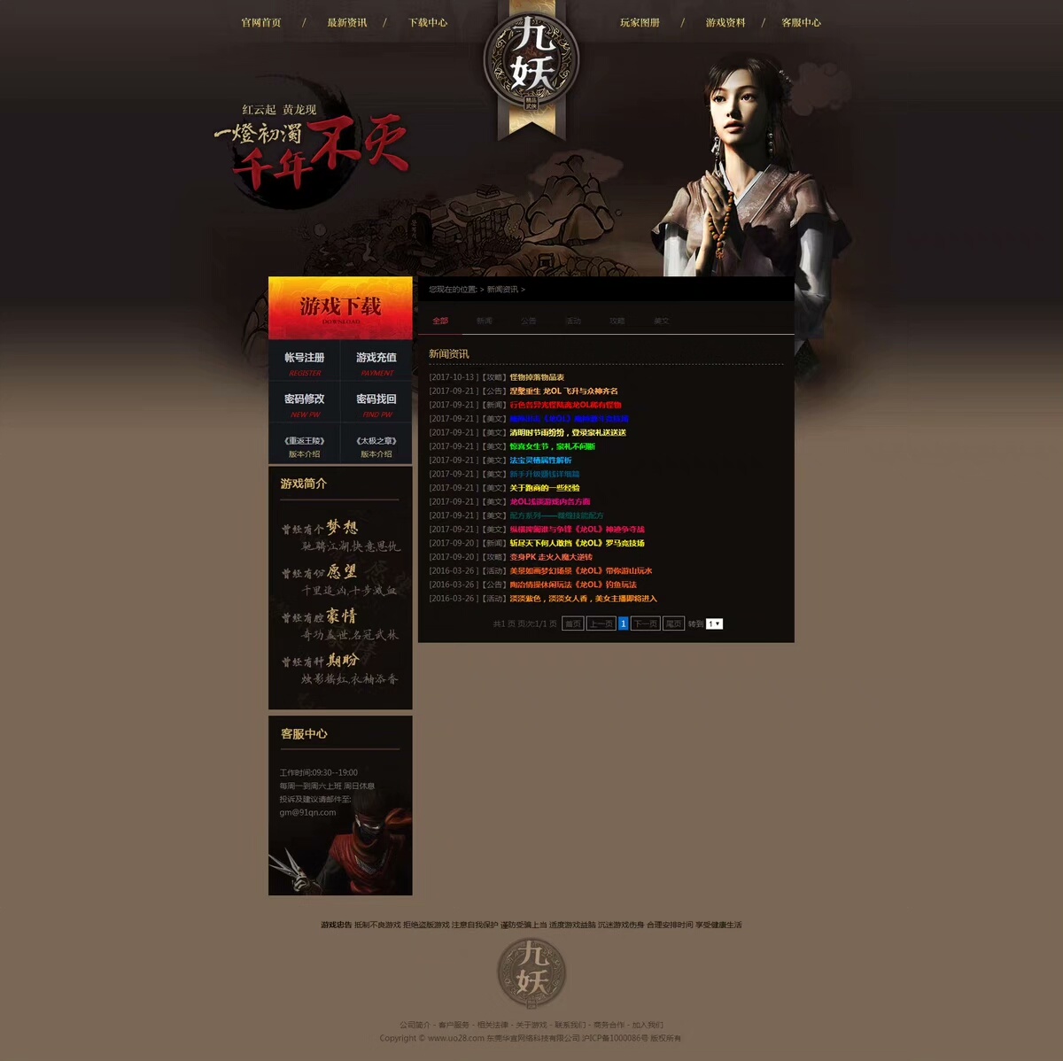 九妖官方网站游戏源码 千年游戏网站模板 ASP带后台千年服务端
