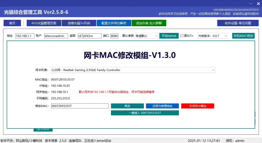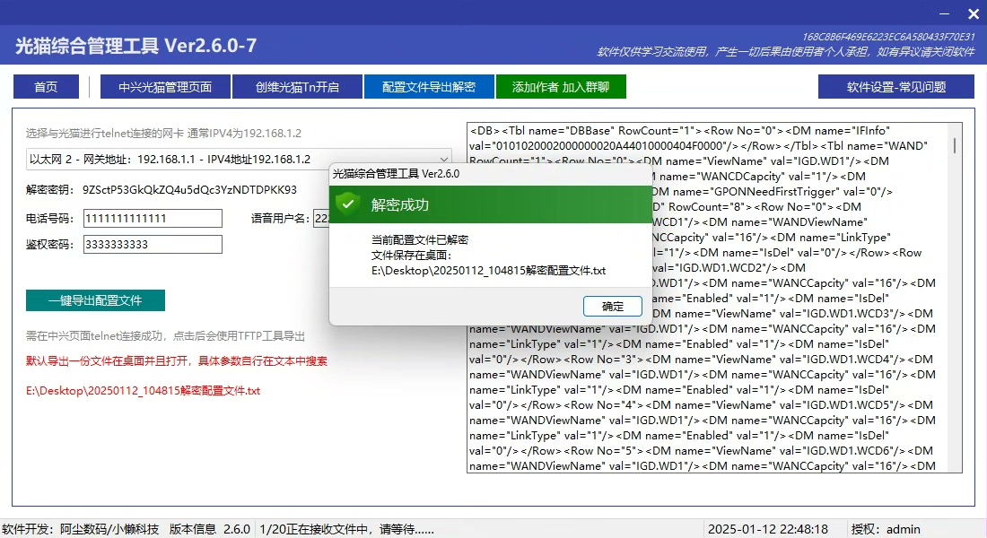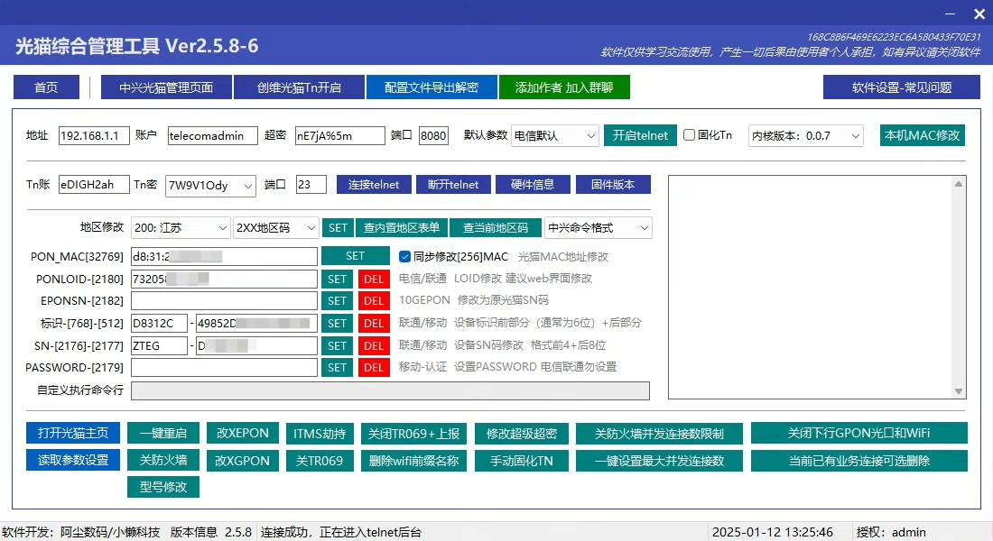 光猫一键修改三码等综合工具 开启telnet工具一键导出解密配置修改工...¥30.00