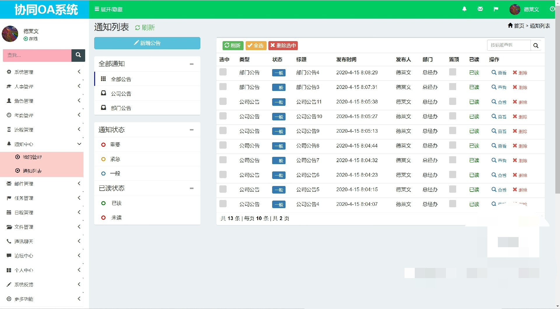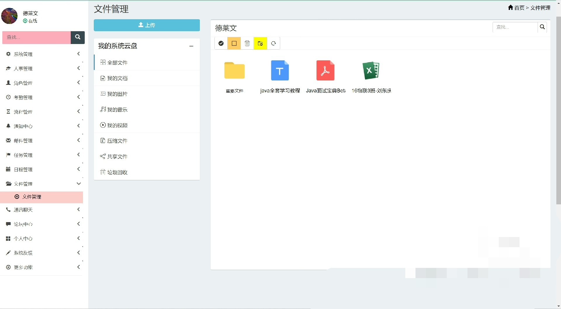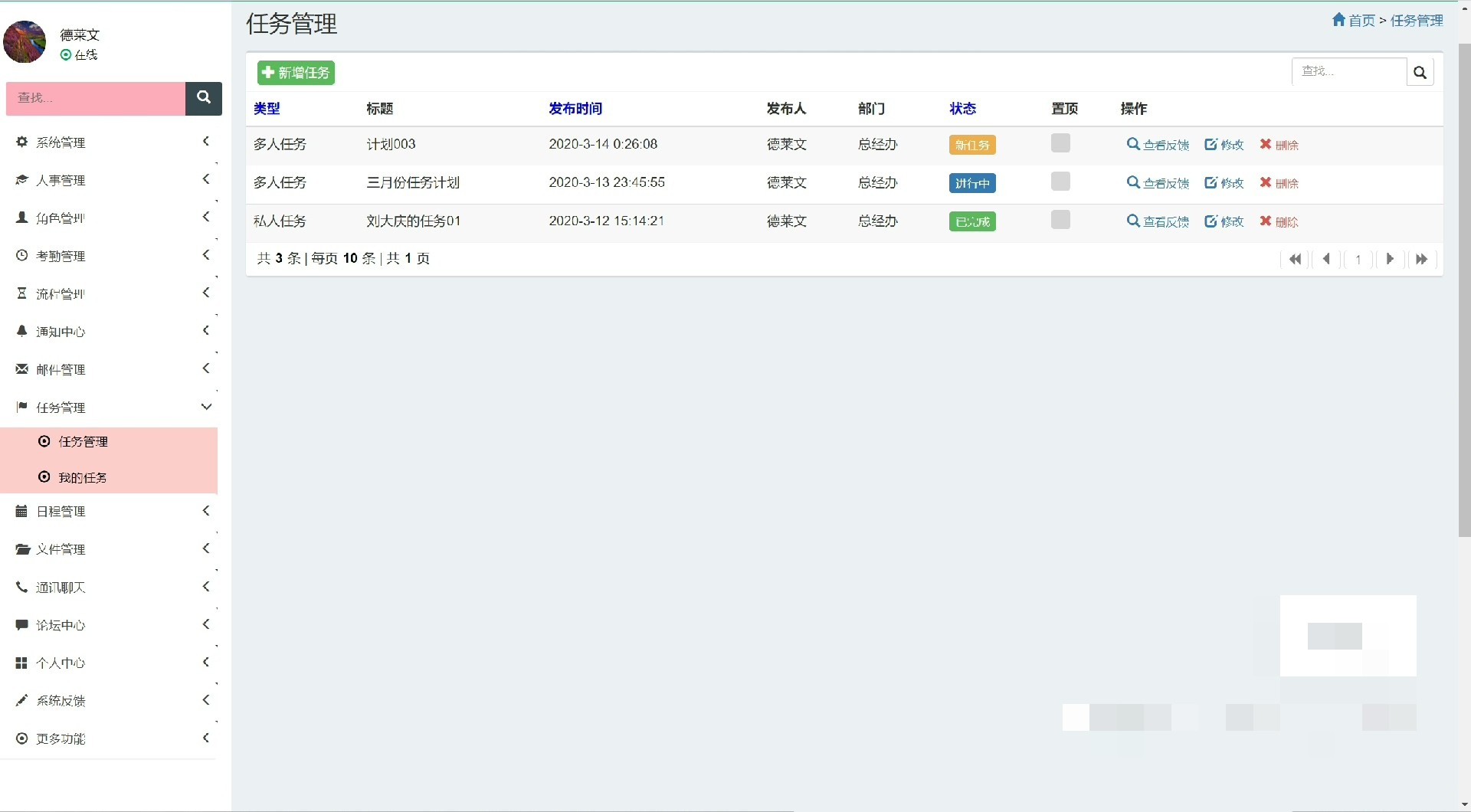 系统管理:菜单管理,类型管理,状态管理,在线用户,系统日志,登陆日志