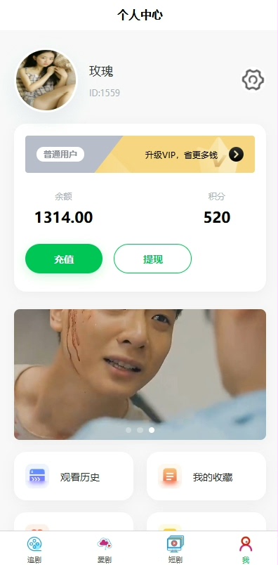 功能:可以微信登录支付,余额提现 分销推广收益,接入广告 广告收益对接 广告联盟变现 充值提现 会员看剧 免费看剧 积分看 数字选集 剧情介绍 剧情图像 头像 手机号登录 还有好多的功能 私信看 小程序演示 搜(玫瑰愛剧)看小程序演示