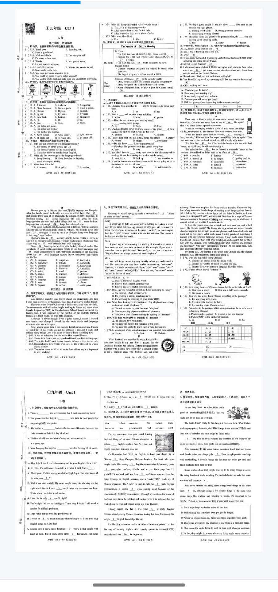 2024-2025春新视界试卷指南针试卷 三个年级更新中