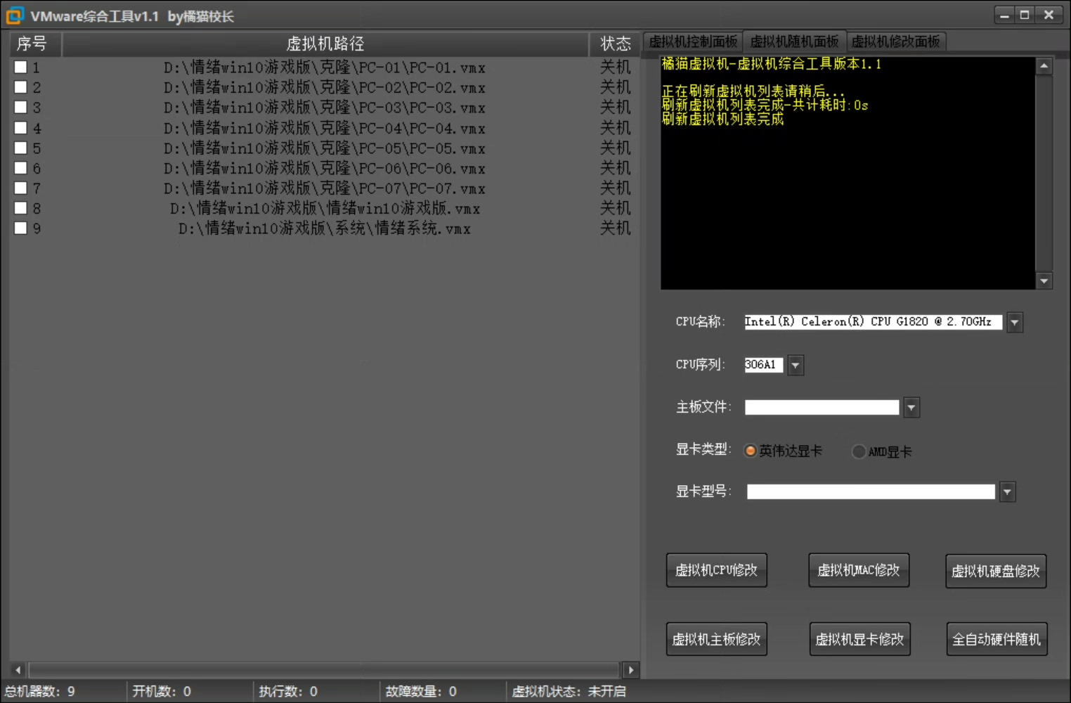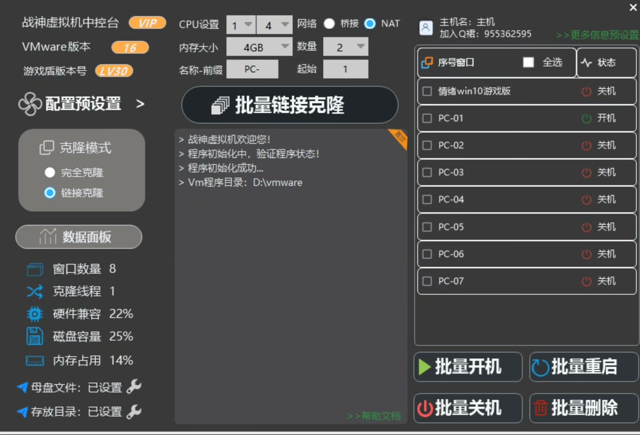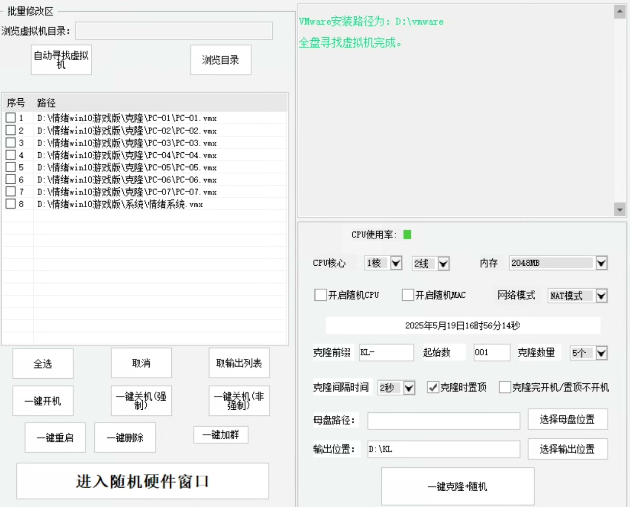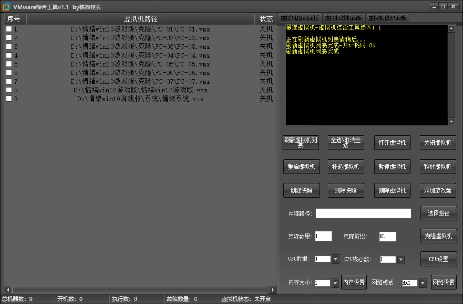 VMware中控台/虚拟机中控/批量克隆/开关机/多功能性/一目了然中控台/全自动克隆/全自动开机/全自动关机/全自动重启 /修改硬件