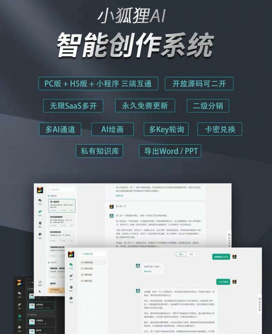 小狐狸ai创作系统3.2.3版本,saas系统 pc+wap+小程序 亲测可完美部署。后端php开源的,前端编译过的