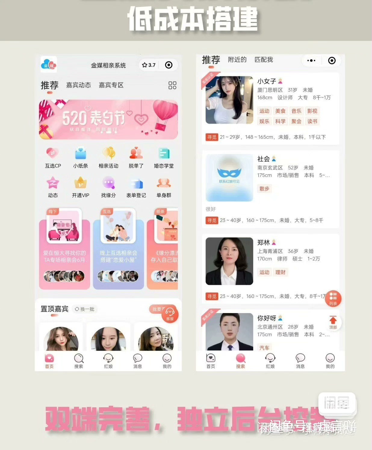 2025最新婚恋相亲系统源码 红娘金媒10.5.1 PC+小程序+公众号 接入三端