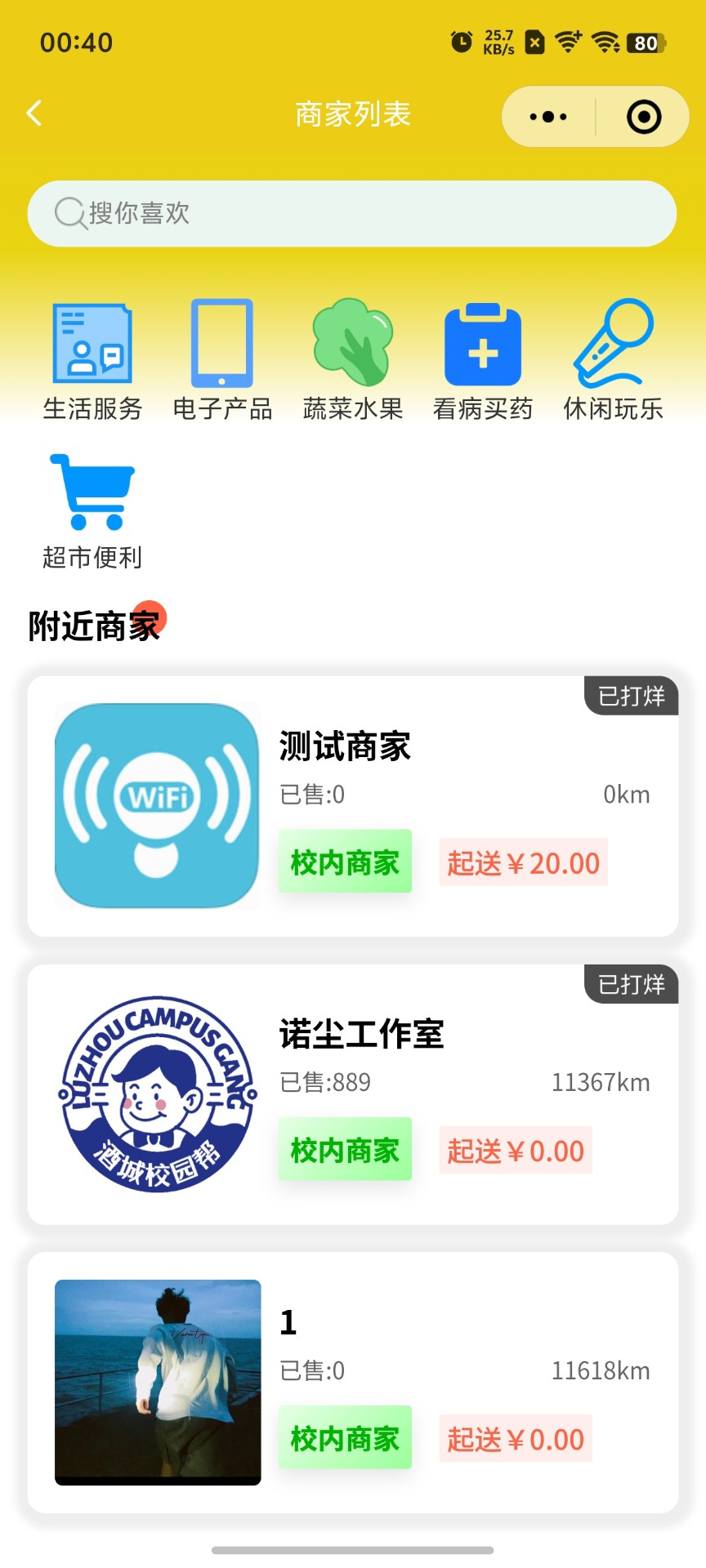 多模块设计:满足跑腿、外卖、表白、二手交易、快递等多种需求。