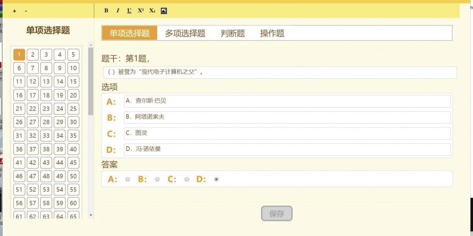 可以无上限增加新题,删除旧题,如果你有多个学科,可以复制N份,每个学科用一个,比如你可以新增1000个题目,然后出5个题,系统会自动抽选题目,带答案方便老师改卷。