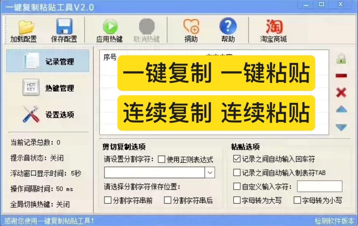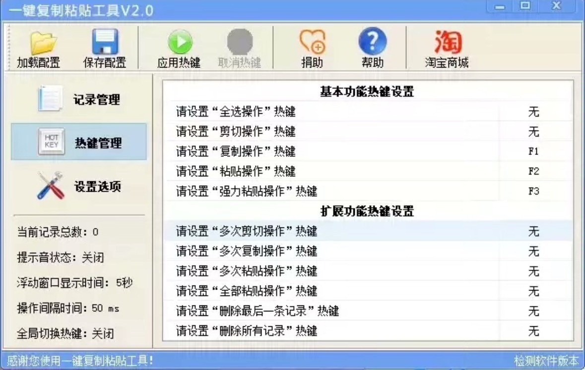 2.可自定义操作热键,【支持一键复制,一键粘贴】。