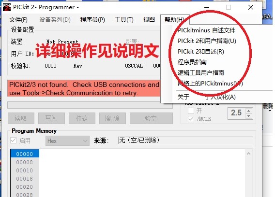 另有同时支持PlCKit 2/3的汉化软件V3.2601及全部资料,还有增加大量型号的数据文件,也有自己添加元件型号的工具软件