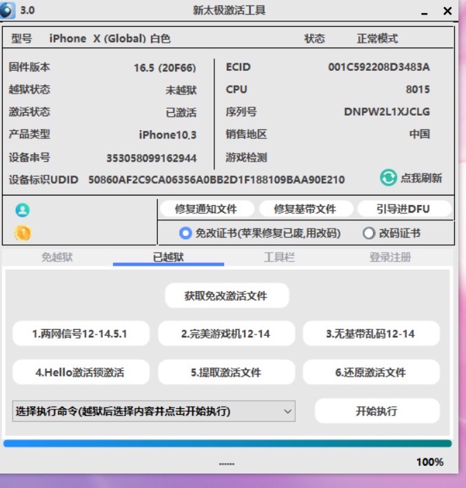 功能:激活锁激活,停用激活,屏锁激活,和删除ID,安装巨魔,紫屏改码
