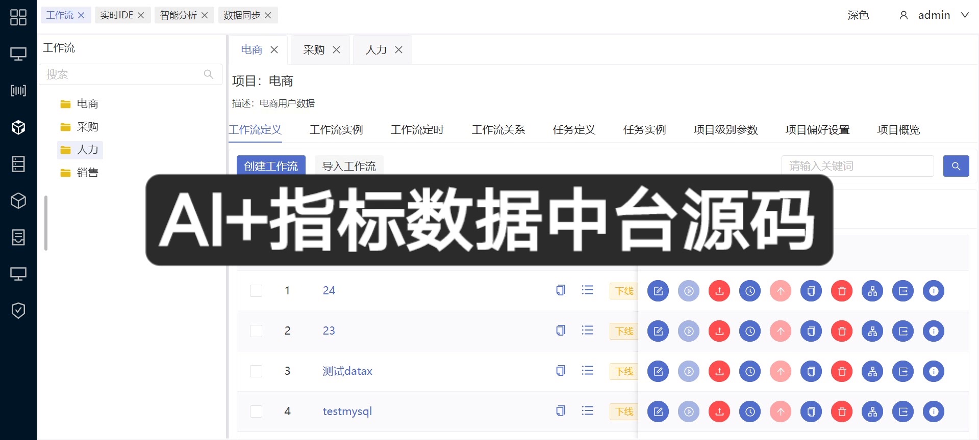 AI加持的指标数据中台源码。产品方向可以快速部署进行学习和了解中台功能,从而指定更好地优化思路。开发方向可以深入研究和优化改进源码,通过项目提升自己的开发能力。