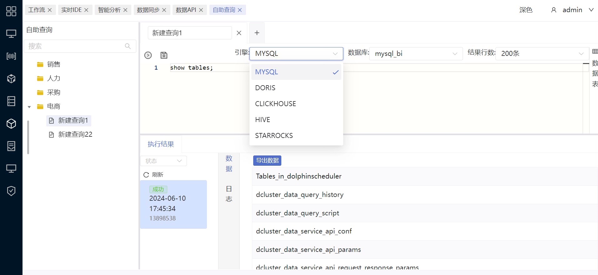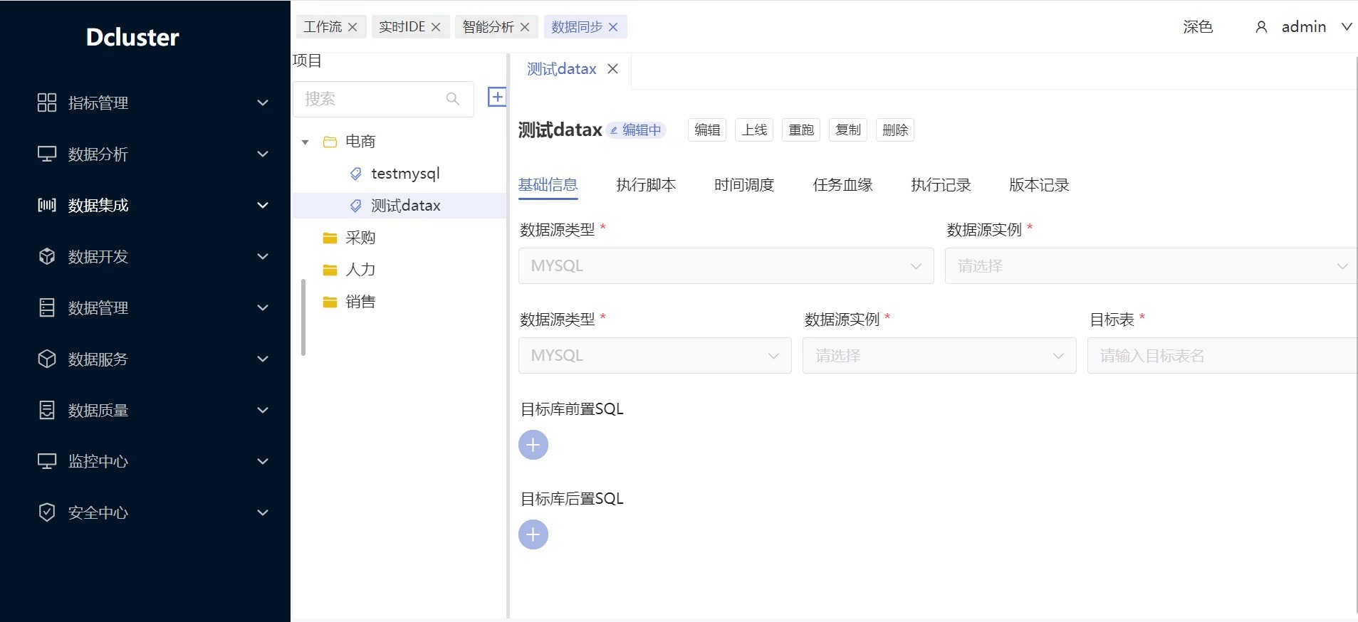 多执行引擎支持:支持多种执行引擎,包括DataX、seatunnal、flinkx等,满足不同场景的数据同步需求。