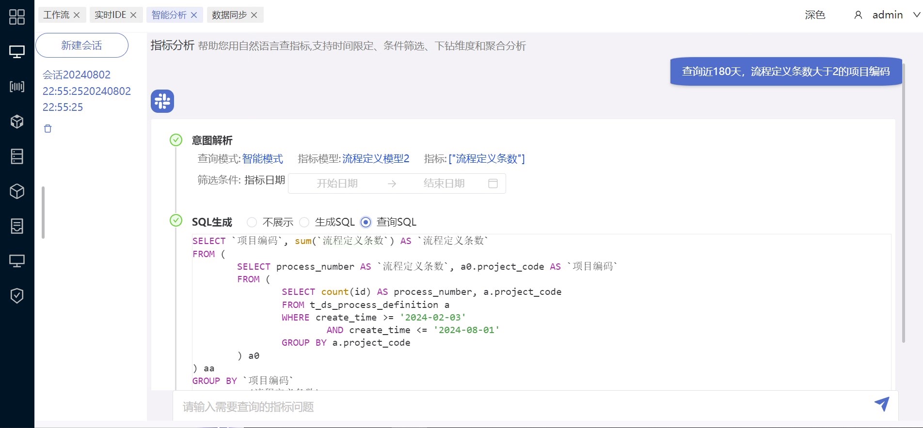 指标模型管理:快速灵活组合各个指标和维度,提供API和智能问答的指标语义模型