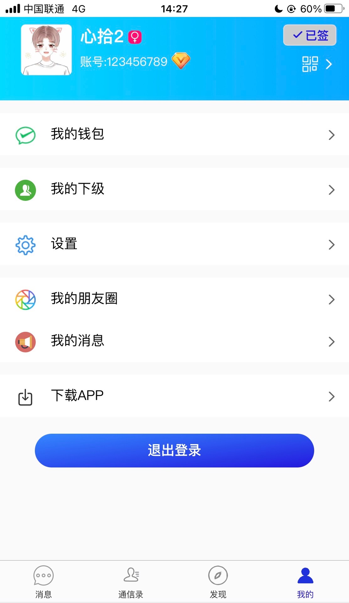 本项目是四合一即时通讯软件,主要功能有群聊、私聊、朋友圈、可以发送文字、语音、视频、图片、表情、红包,转账等。消息可以撤回, 群组可以设置管理员、可以禁言、踢人,可设置是否可查看用户信息,可@用户、可发群公告等,支持扫码入群,可设置好友备注、群名片、消息置顶、消息免打扰、可以邀请好友直接进群等,拥有代理功能,支持关键词屏蔽,vip功能,签到功能,支持消息离线推送(ios无需上架,但是签名需支持push,通过APN推送,Android需要上应用商店,否则无法实现离线推送,下单一定要了解好离线消息相关流程)