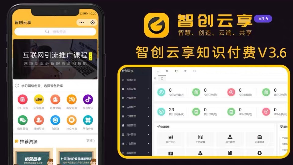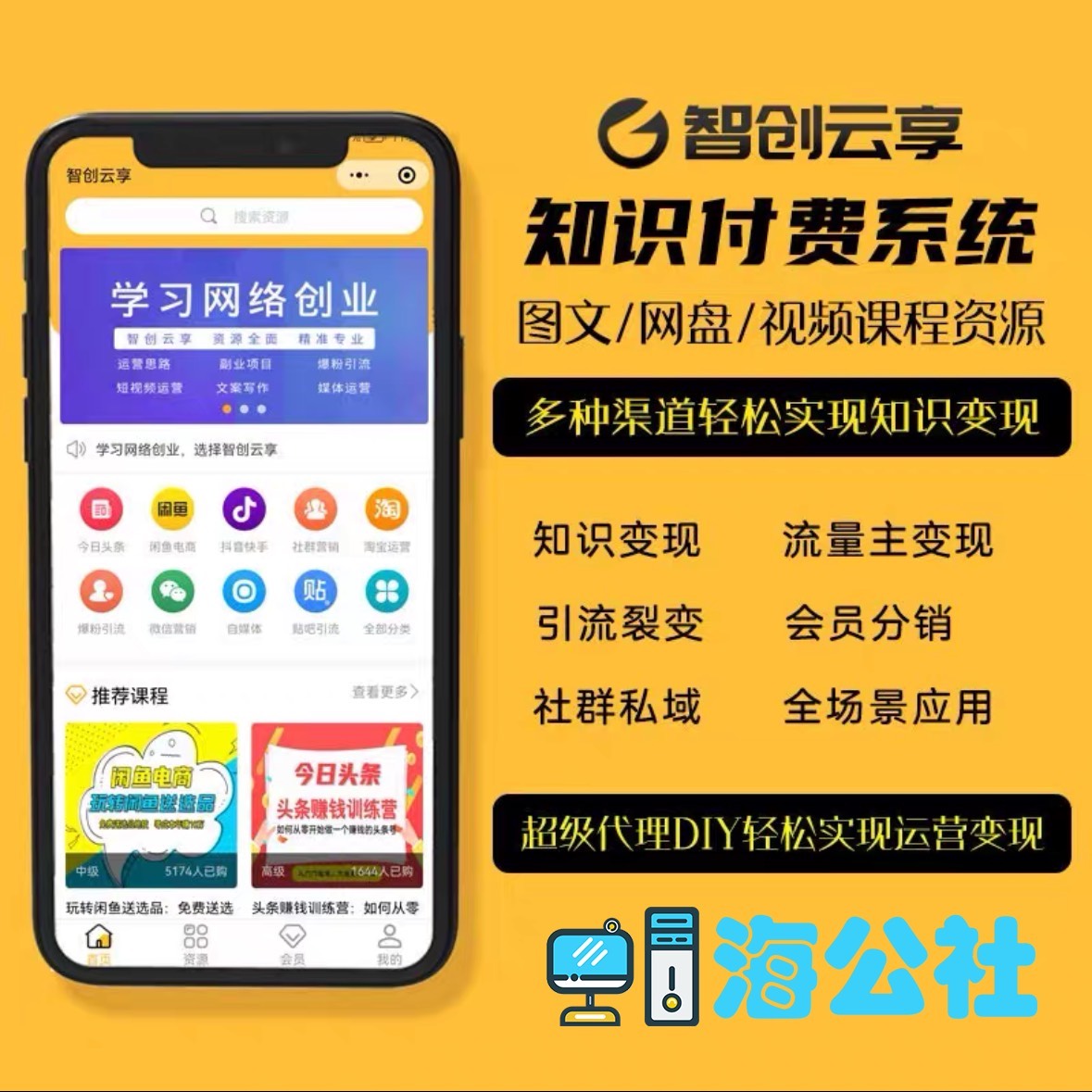 最新版 V3.6 版本!智创云享知识付费/资源变现小程序代搭建正版分站。