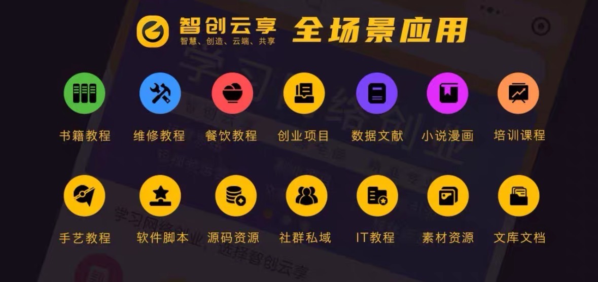 全场景应用:书籍教程、维修教程、餐饮教程、创业项目、数据文献、小说漫画、培训课程、手艺教程、软件脚本、源码资源、社群私域、IT教程、素材资源、文库文档;