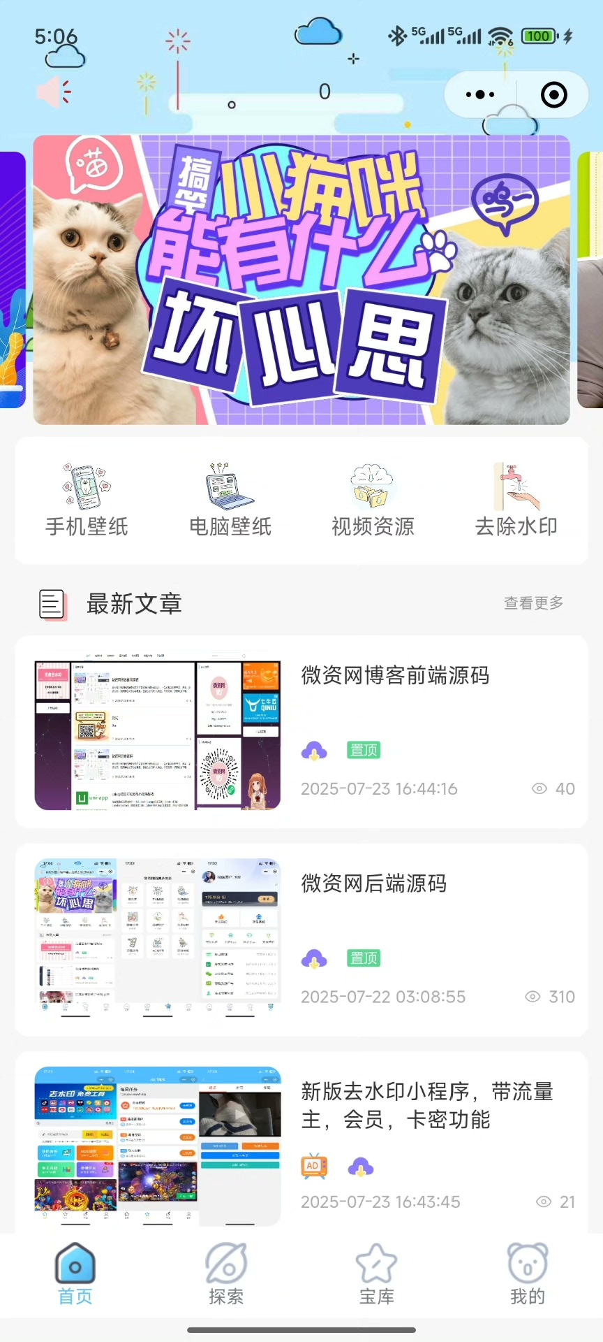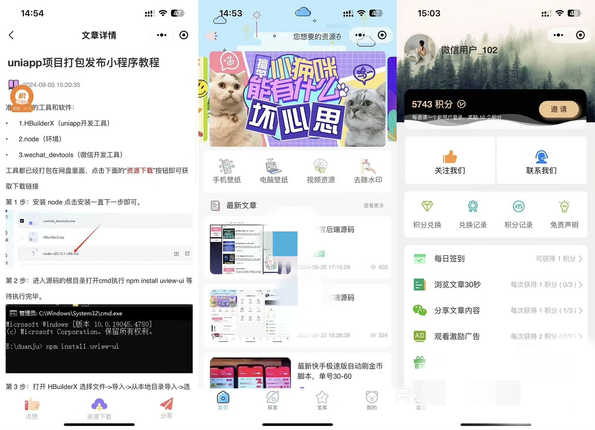(修复版)博客小程序资源站小程序源码带流量主,积分系统,积分商店