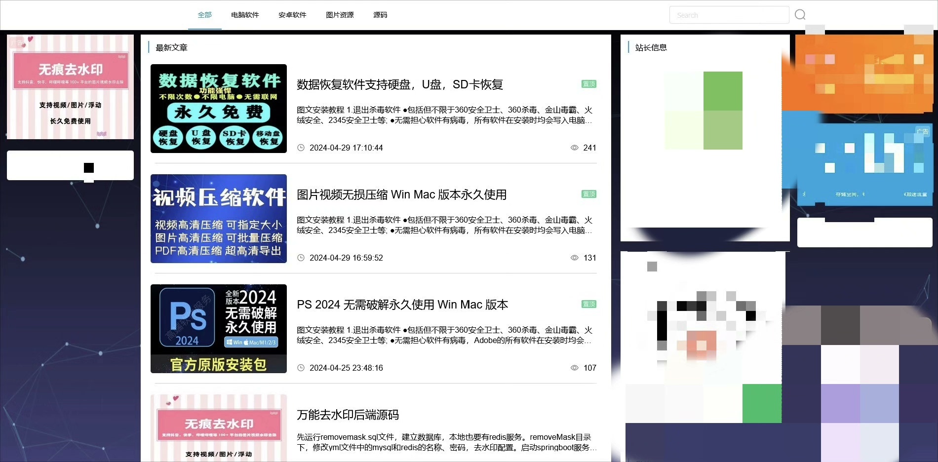 博客源码博客资源变现专为内容资源下载场景设计,一站式解决内容带货、流量、资源变现,资源博客文章分享难题,目前以实现个人博客,文章发表,资源收集下载,网盘短剧视频链接分享,手机壁纸下载,电脑壁纸下载,头像下载,支持抖音,快手,小红书等 100+ 平台的图片视频水印去除,这些内容展示均已实现微信小程序流量主广告变现功能,可根据自己需要进行配置, 另外还加入了积分系统以及积分任务和积分商店,可让用户完成相应的任务获得积分换取奖励,源码无保留可二次开发