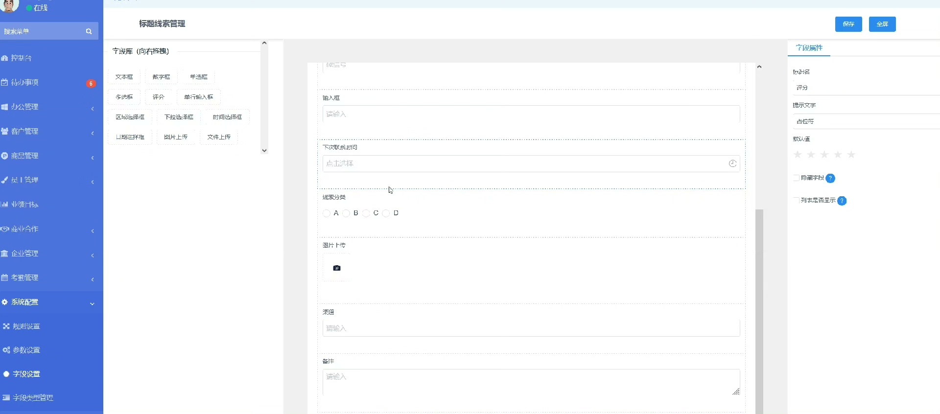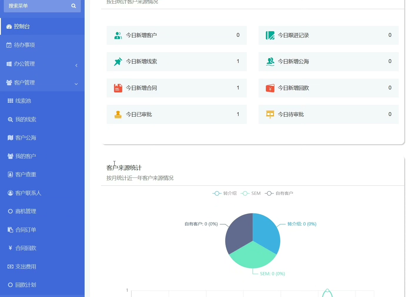 主要功能:线索管理、客户管理、合同管理、业绩管理、审批管理、数据分析等