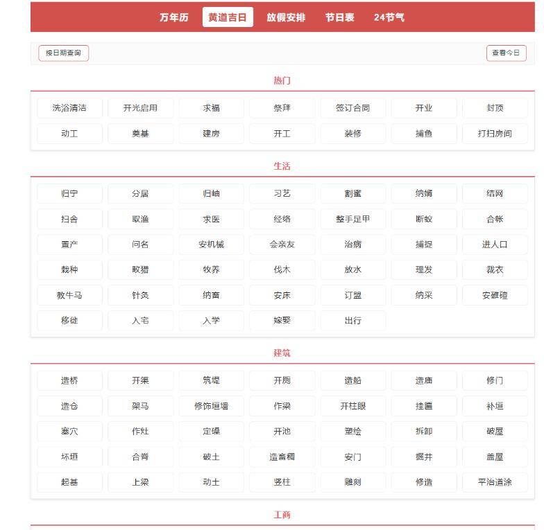 适用站点:时间查询、时差计算、万年历、黄道吉日查询、假期查询、节气表等;