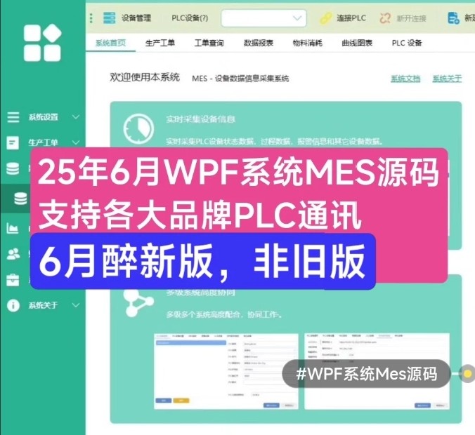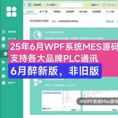 2025年6月新版WPF设备数据采集系统MES源码,支持各大品牌PLC通讯,带文档,工业级MES系统完整源码,支持二次开发!亲测截图
