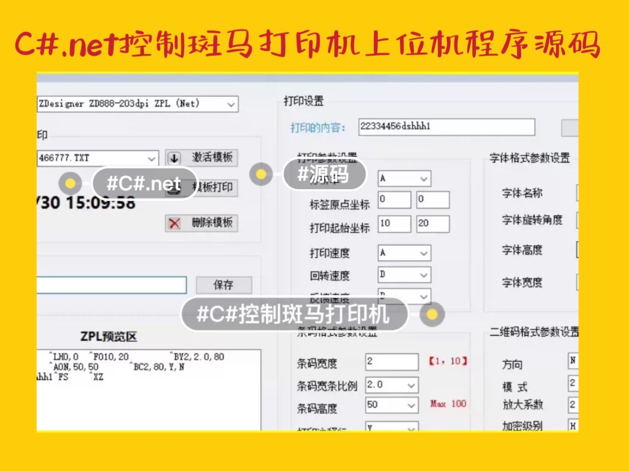 1.经过几天的研究,通过发送ZPL语言给打印机,打印一维码和二维码。