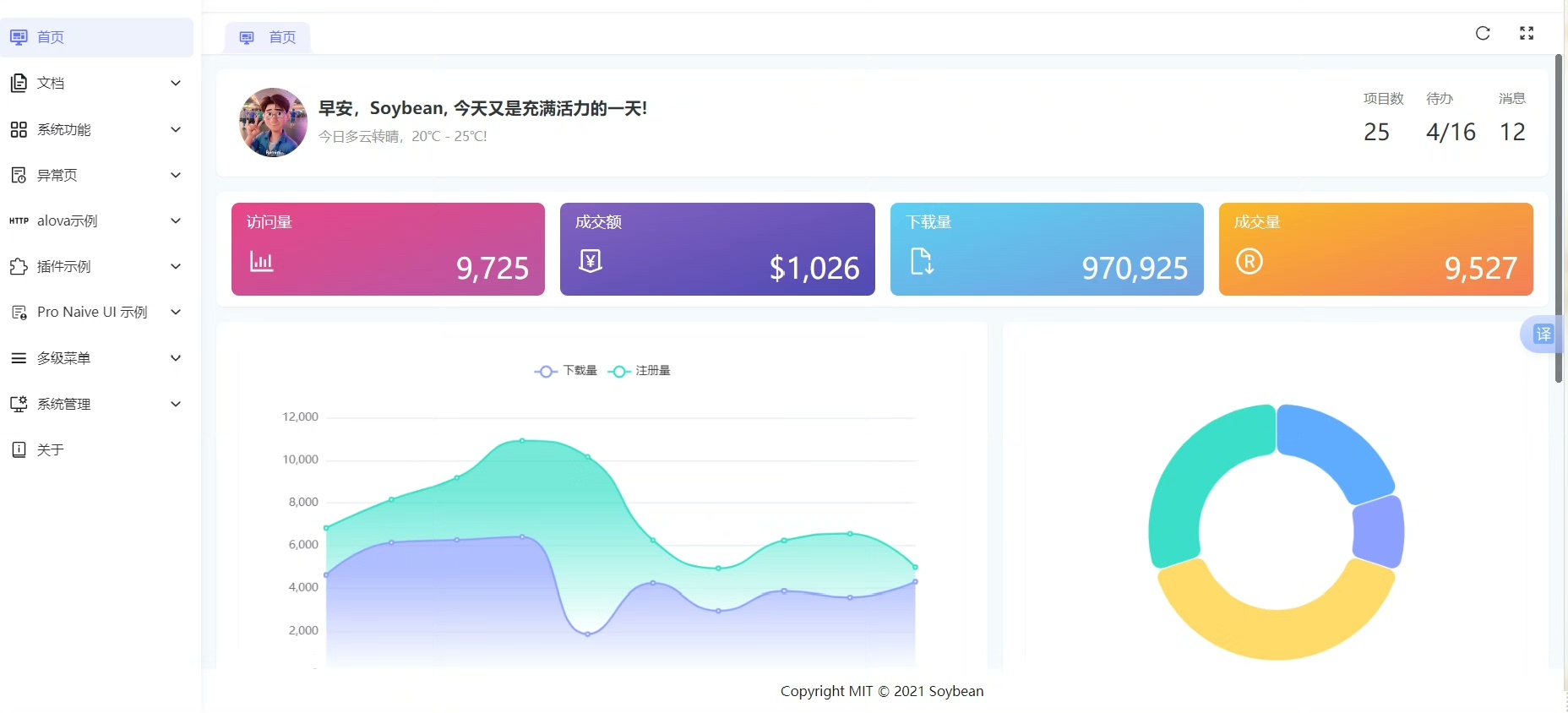 比若依还漂亮的前后端框架,前后端代码都带,前端是一个基于 Vue3、Vite、TypeScript、Naive UI 的中后台模版,它使用了最新的前端技术栈置丰富的主题配置,有着极高的代码规范,基于mock实现的动态权限路由,开箱即用的中后台前端解决方案,也可用于学习参考。