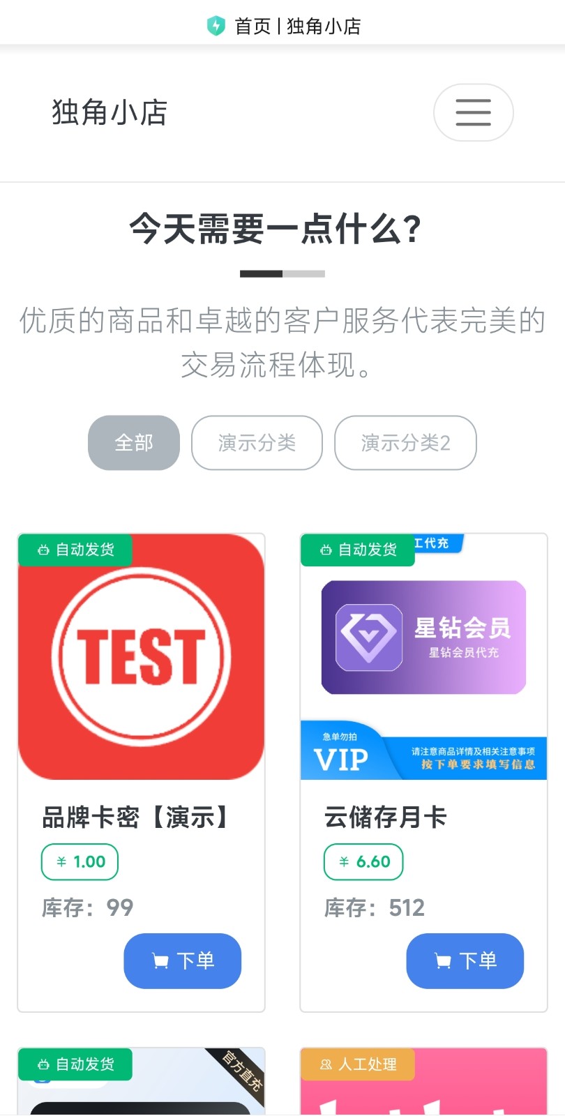 自动:在特色服务中标有自动发货的商品,拍下后,源码类 软件类 商品会在订单详情页显示来自卖家的商品下载链接,点卡类 商品会在订单详情直接显示卡号密码。