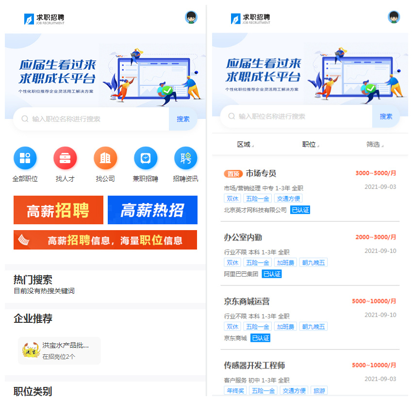 本款模板专为求职招聘网站设计,支持PC端和移动端访问。它采用了当前流行的简洁风格设计,不仅美观大方,而且用户体验良好。企业可以在平台上发布招聘信息,而求职者则可以上传个人简历,并且一键申请心仪的岗位。此外,该模板预留了多个广告位供运营者使用,增加了变现的可能性。后台管理系统功能强大,允许管理员设置置顶热门职位与企业信息,并提供了丰富的求职招聘模块以供选择。