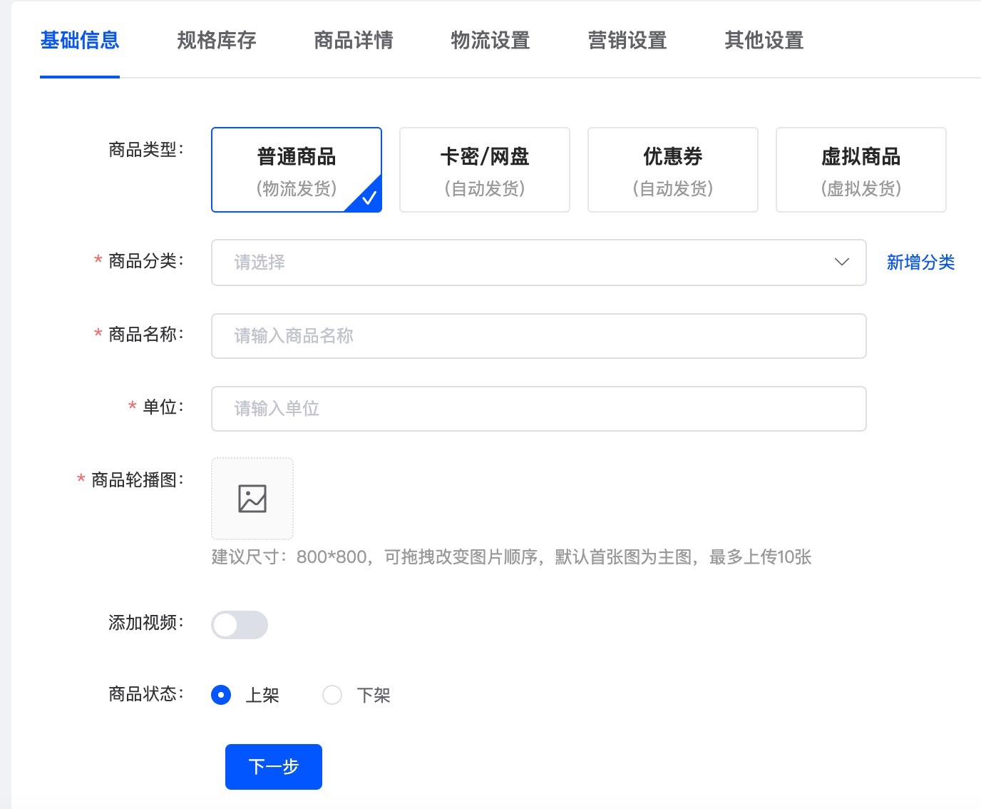 1.支持普通商品、卡密网盘商品、优惠券、虚拟商品
