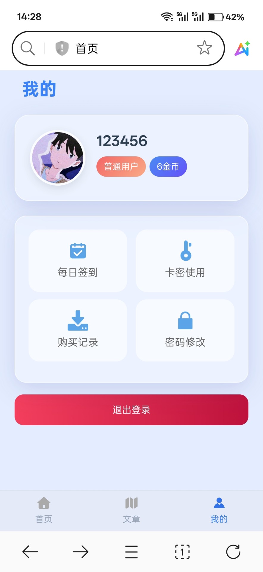 新增【购买记录】【文章列表】【用户签到】【金币系统】等系统