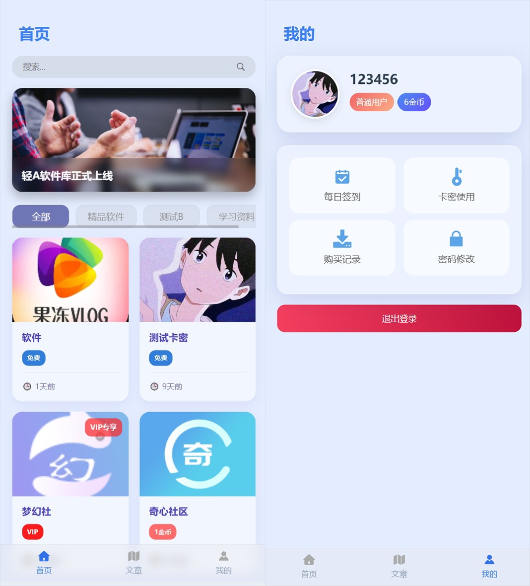 自研软件库+文章+卡密+金币余额系统,一整套系统出售,自己开发的完整软件库源码系统