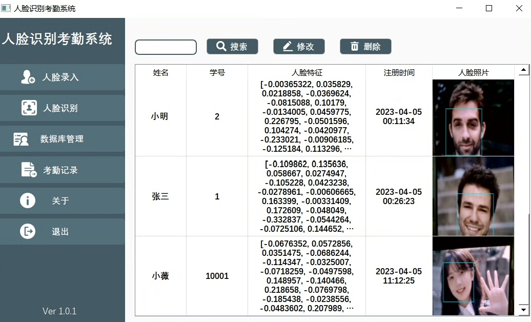 系统集成了三大核心功能:实时人脸检测、自动考勤记录与后台数据管理。