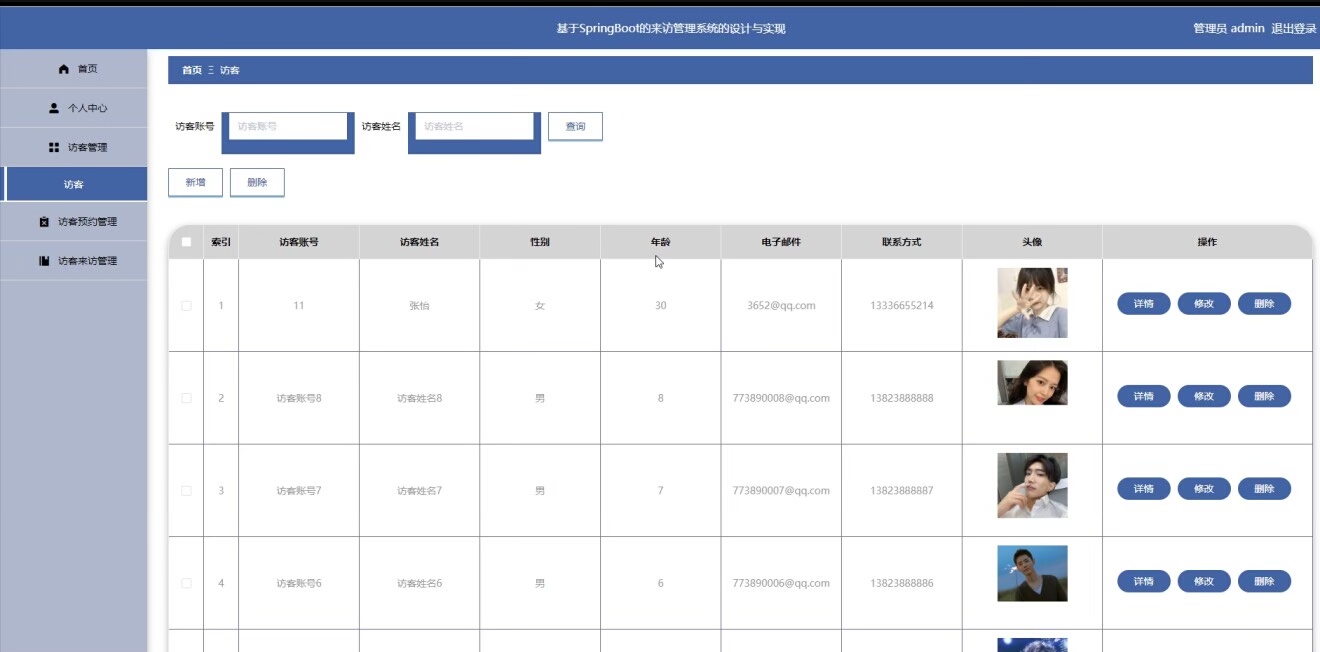本系统采用前后端分离设计,支持访客端与管理员端双通道操作。