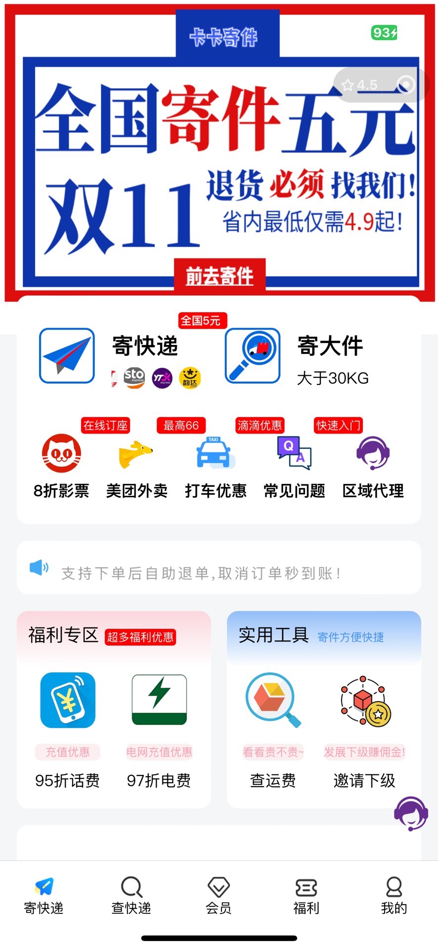 接入主流快递公司API接口,覆盖全国范围网络,用户寄件成本低至4.9元起。