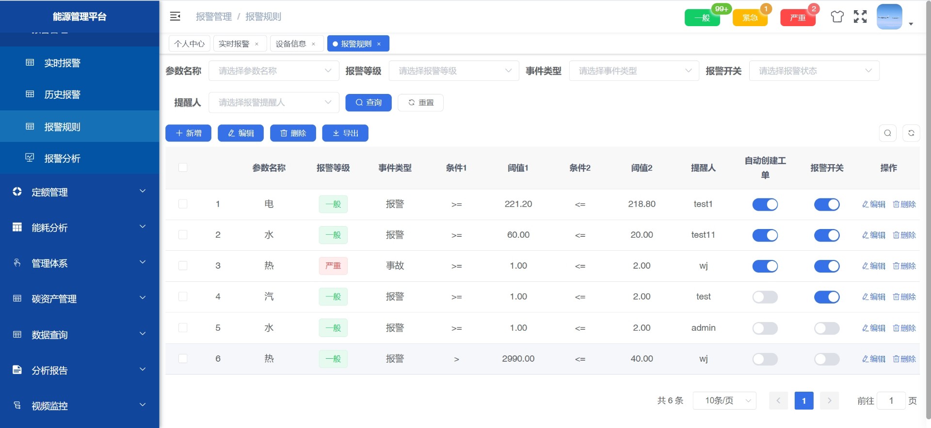 提供设备台账信息维护功能,支持设备分类、编号、安装位置、所属区域等多维度管理,同时可对通信网关进行统一配置与状态。