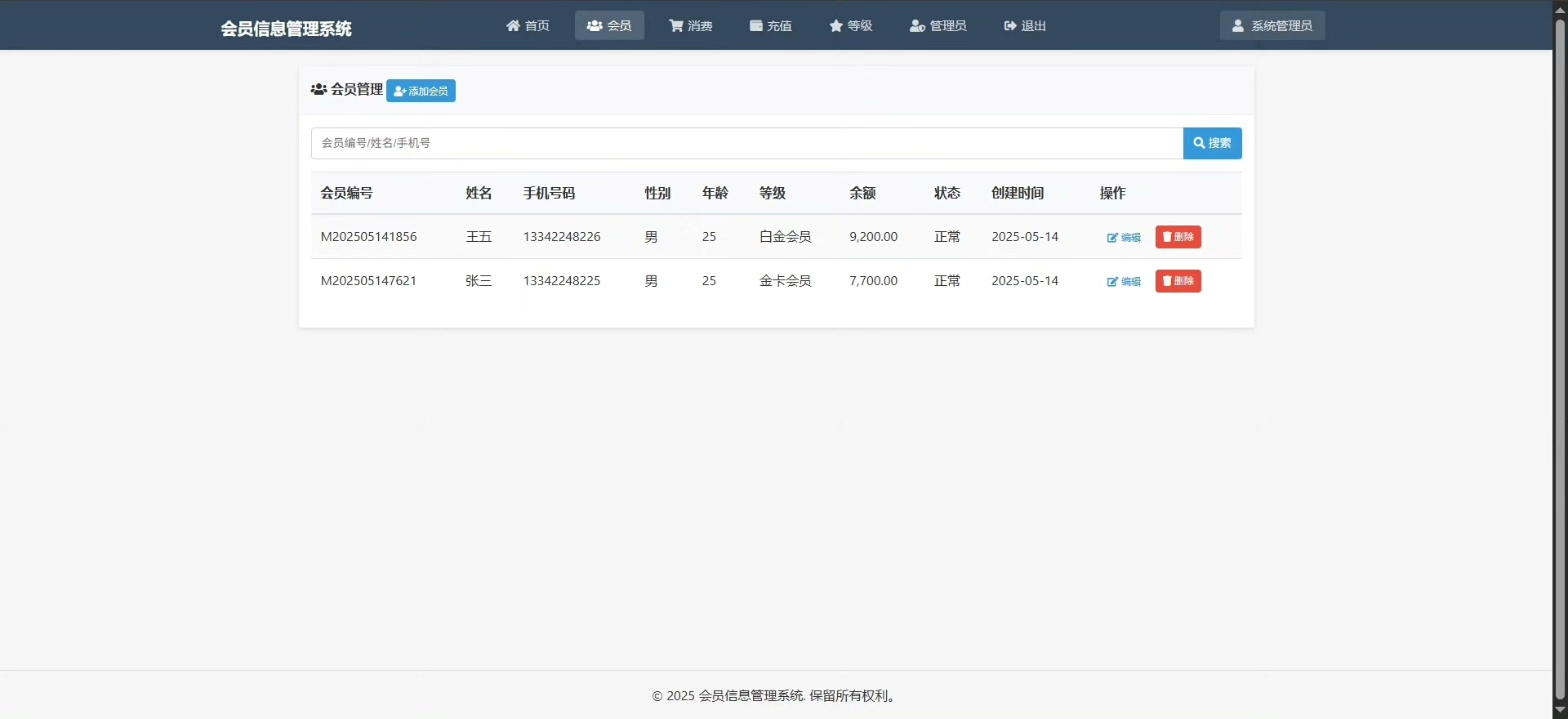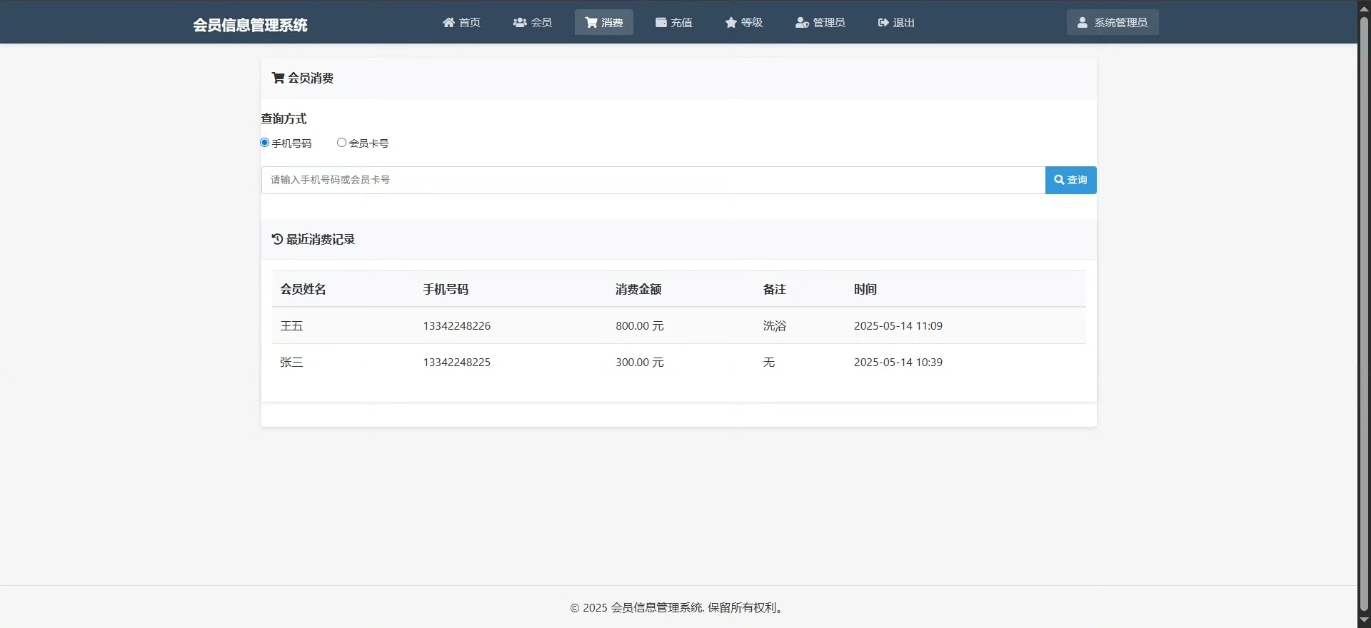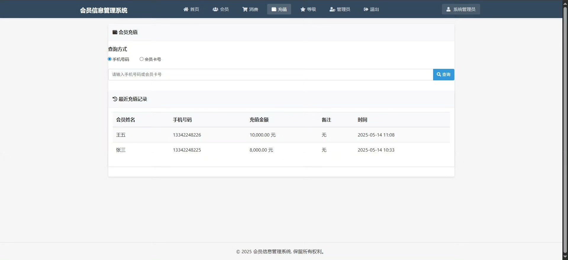 管理员可通过后台完成添加、账户充值、消费记录登记、等级配置以及子管理员账号创建等操作,全面掌控用户数据与资金流动。