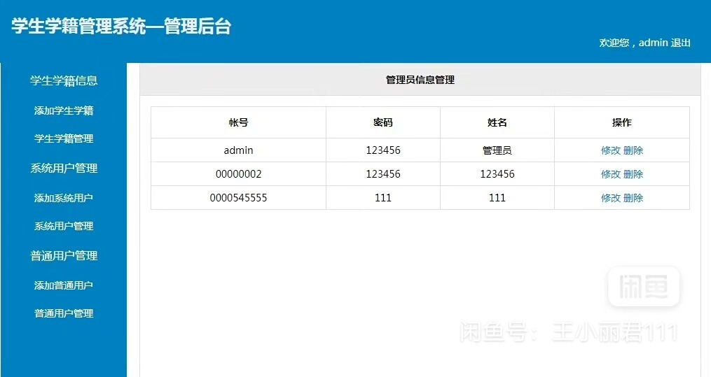 普通用户也可在范围内完成学生信息的增删改查,满足多角色协作需求。