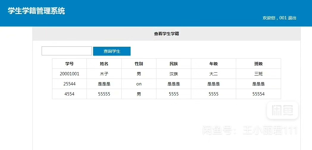 前台支持按姓名、学号等条件快速检索学生基本信息,响应迅速,界面简洁。
