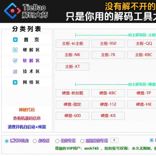 解码大师Tie Bao是一款专为解决游戏封禁问题而设计的高性能机器码修改工具。