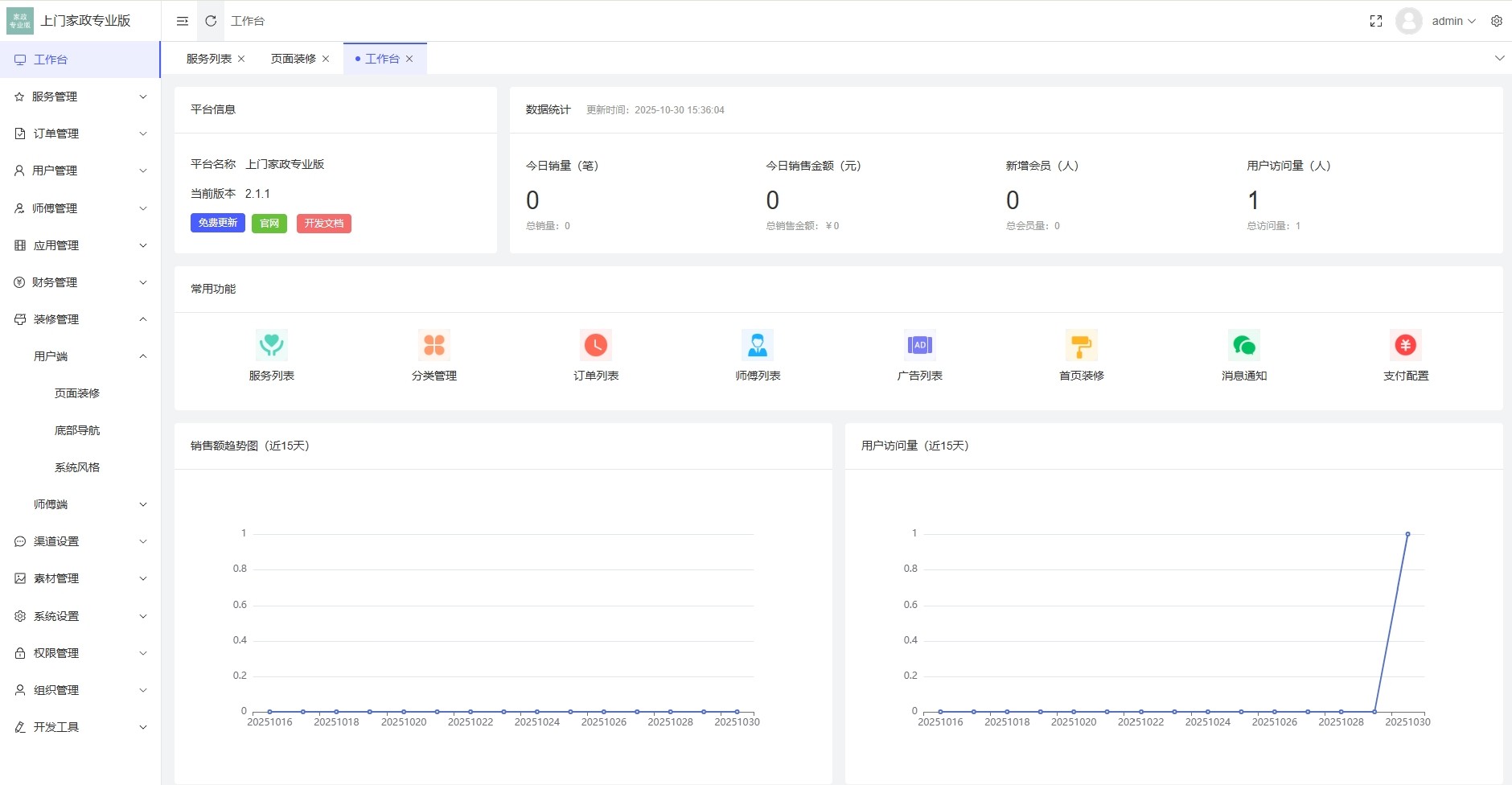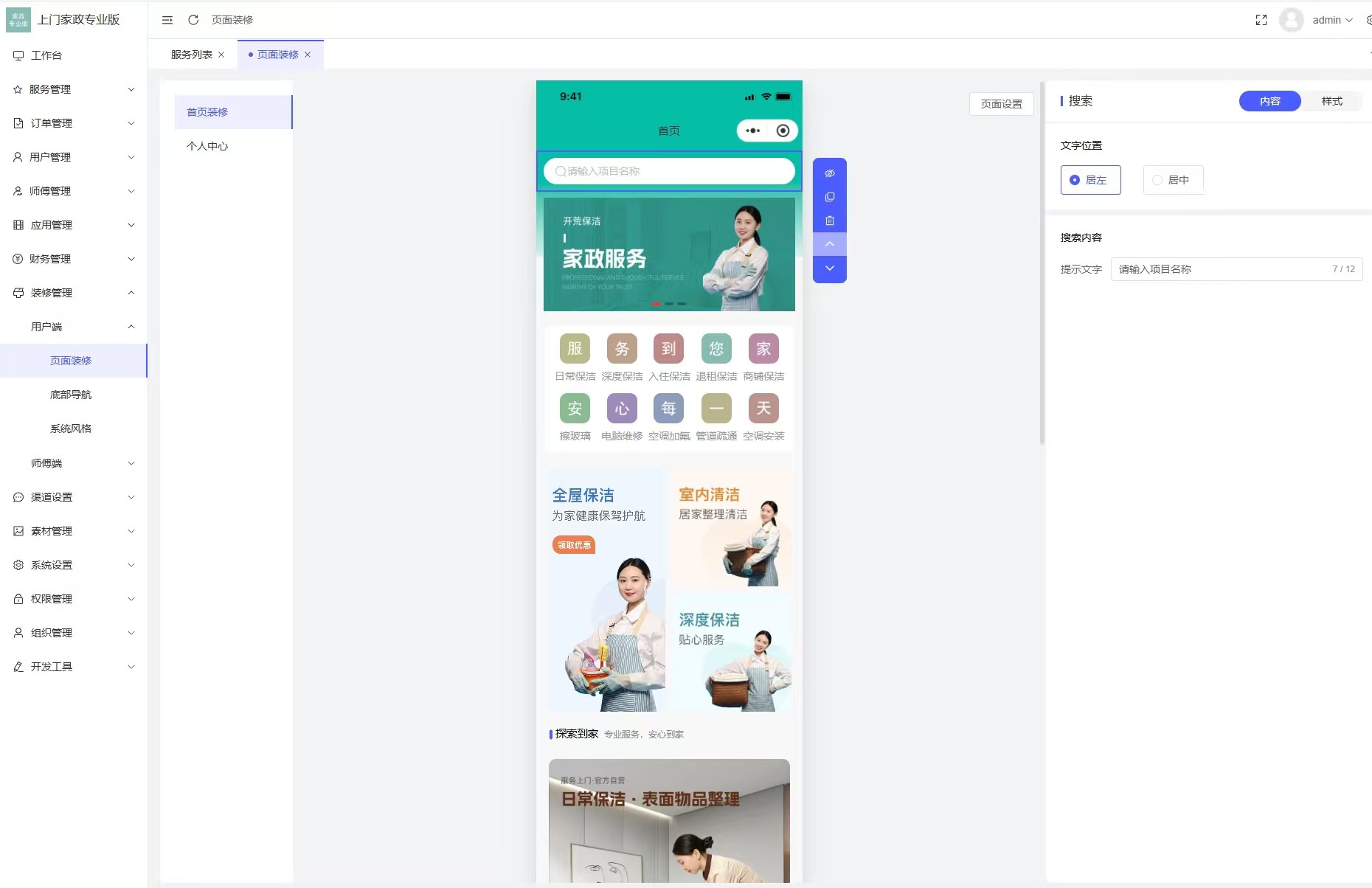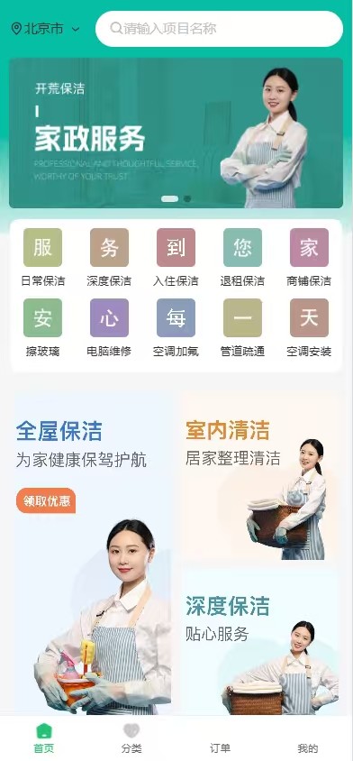 系统架构稳定,功能丰富,适用于构建专业的上门家政服务平台,广泛支持多种业务场景。