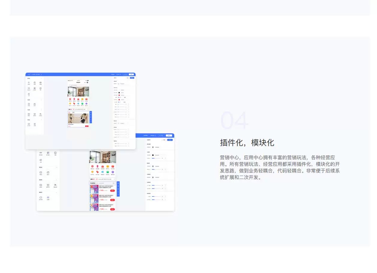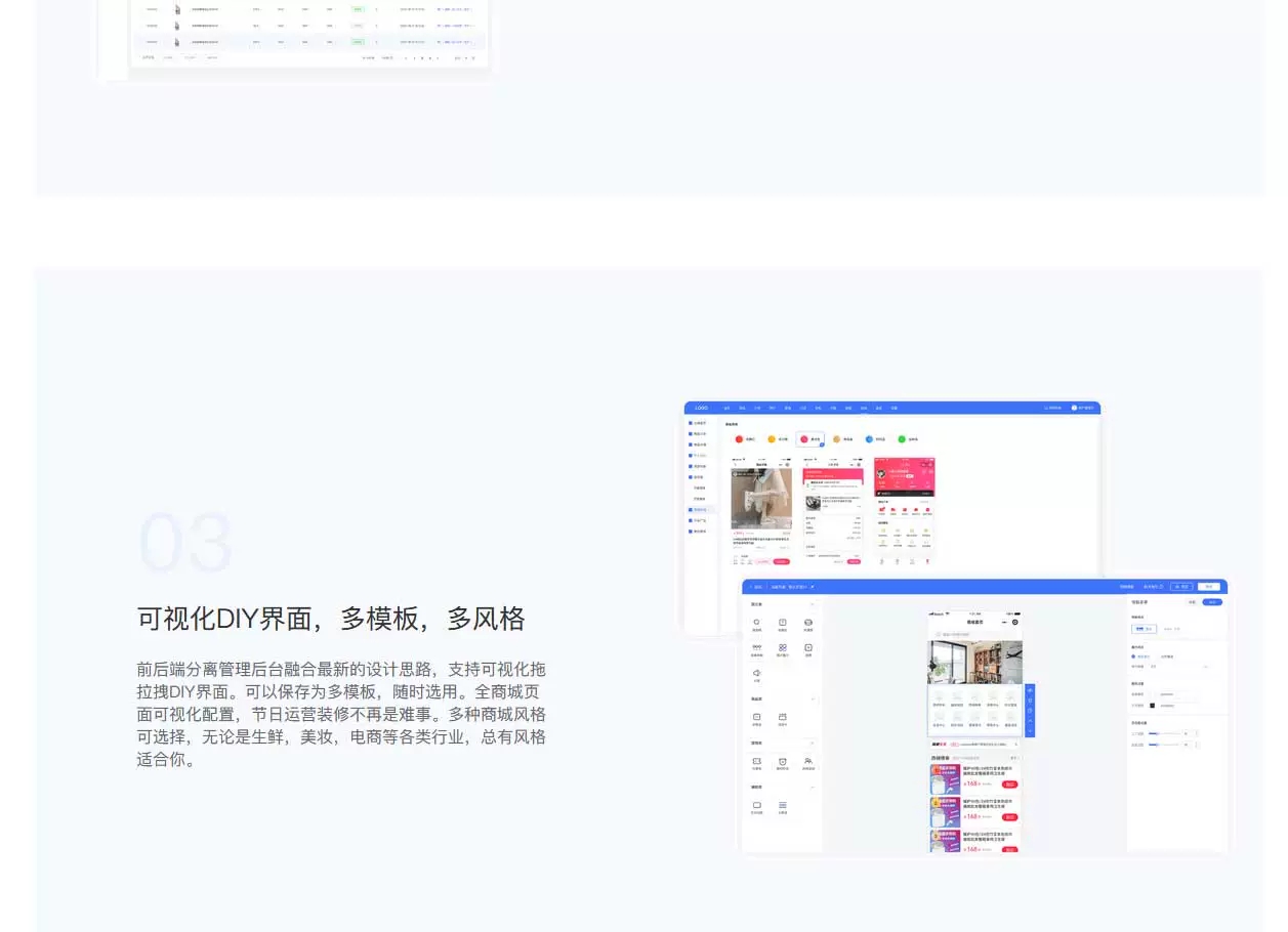 提供灵活的页面自定义功能,支持DIY拖拽式装修,商家可自由配置首页布局、商品展示风格等。