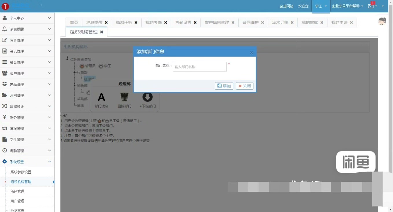 组织架构管理:支持建立公司部门结构并关联相关人员。