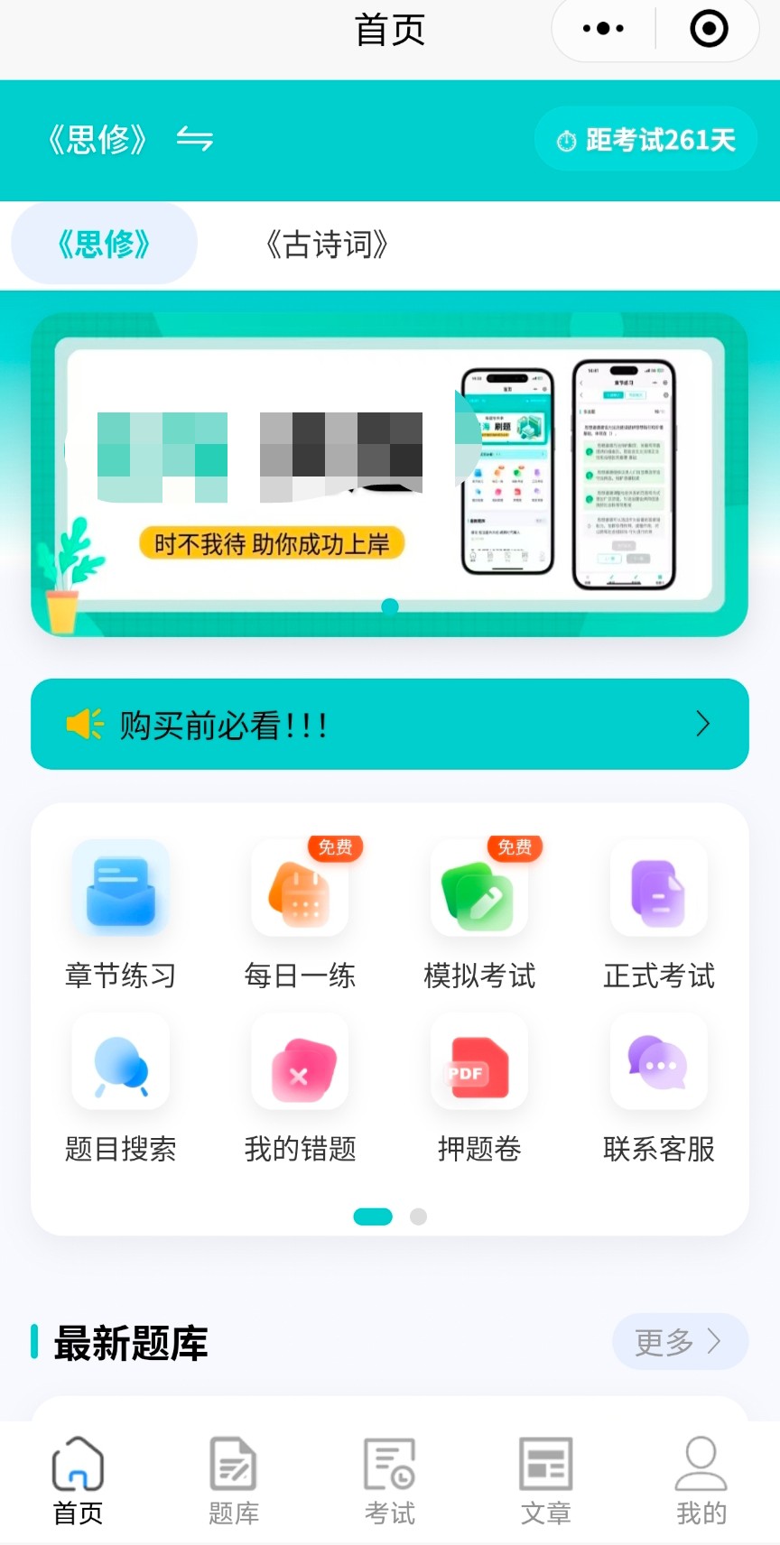 内置完整的模拟考试功能,考生可按章节、知识点或随机抽题进行练习。