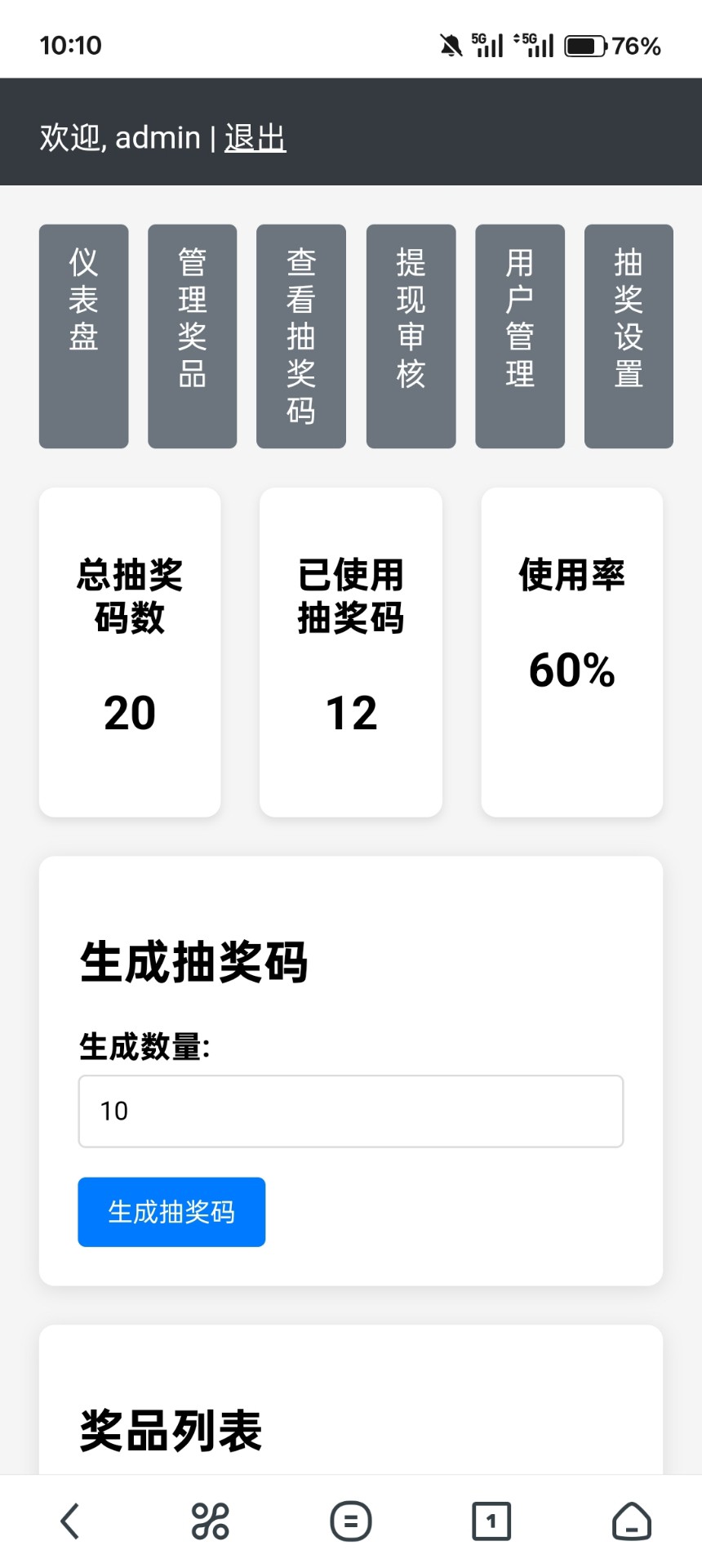 提供强大的后台管理功能,支持按需批量生成唯一抽奖码,可用于线下推广、会员赠送等多渠道分发场景。