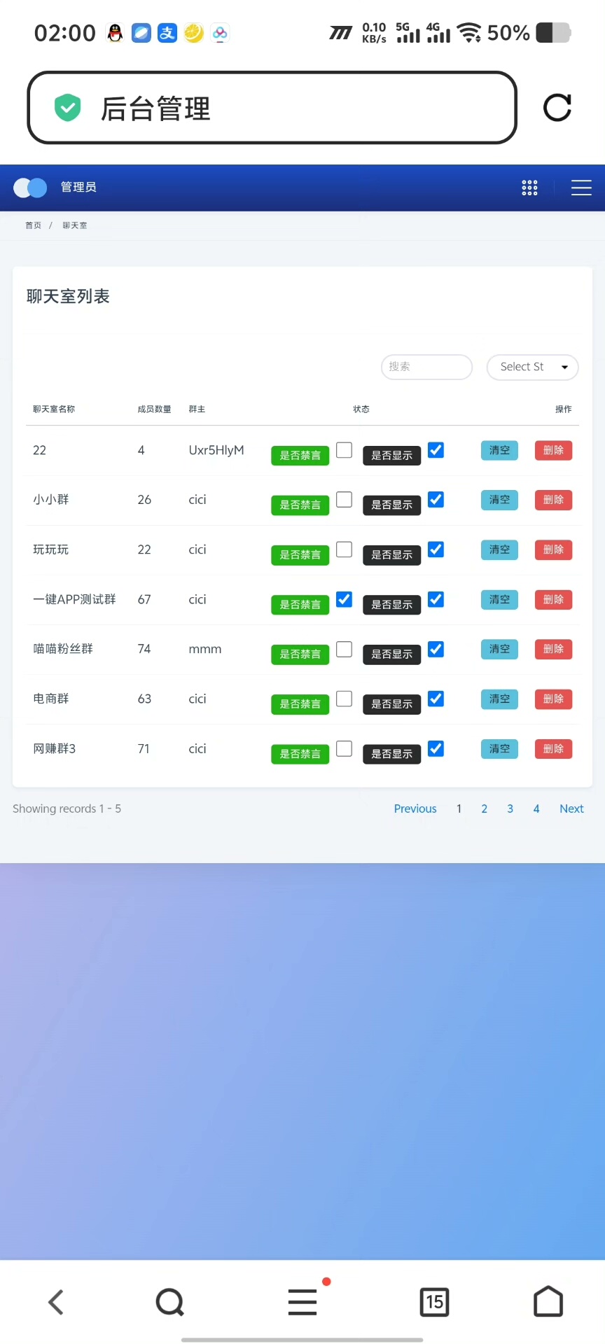 每位用户均可自主创建群聊房间,并拥有管理员权限,可对成员进行管理。