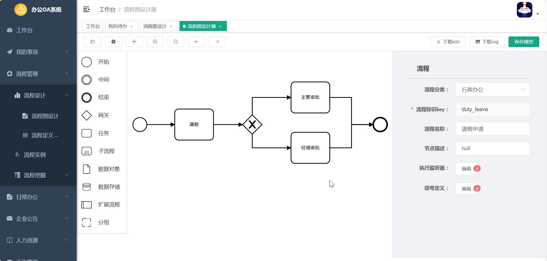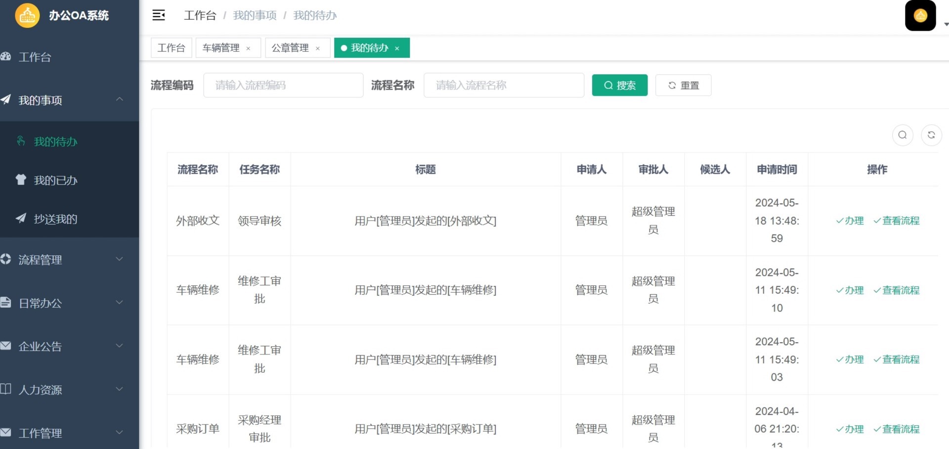 系统内置强大的工作流引擎,支持自定义表单与审批流程配置,涵盖请假、报销、采购等常见办公场景,实现业务流程自动化管理,提升企业协作效率。