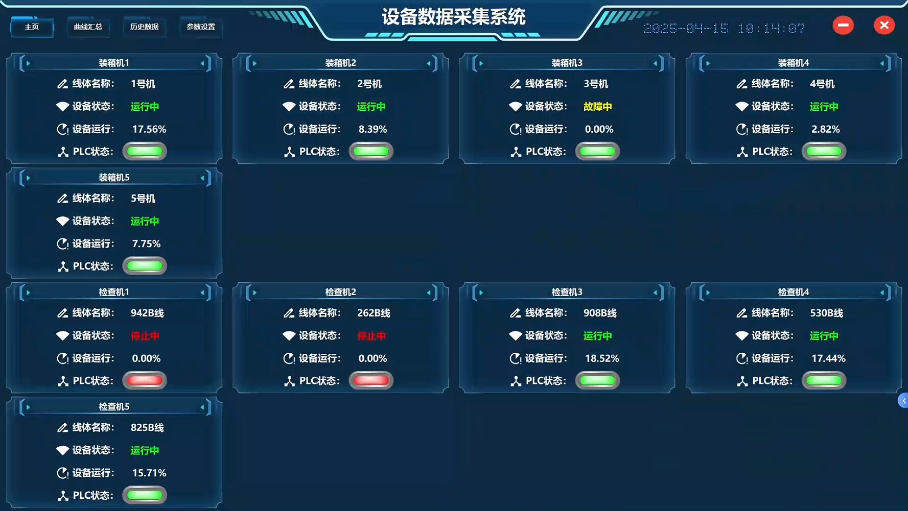 设备报警状态实时(10台):动态展示每台设备的当前报警信息,异常即时提示,保障生产安全。